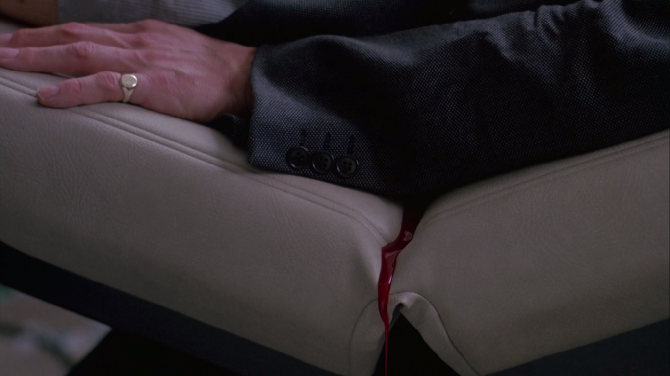 I love what you said about both of these shots, and that rivulet of blood is a total standout for me, too. I admire even the way that the shot takes something totally mundane – the uncomfortable creases in a plasticized chair or seat cushion, in a car or a doctor's office – and makes it the vehicle for something totally uncanny. “Elegant violence” indeed!